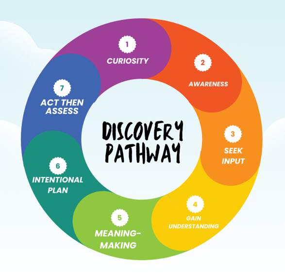 Each phase of the pathway holds specific elements to insight and learning which spark action planning.